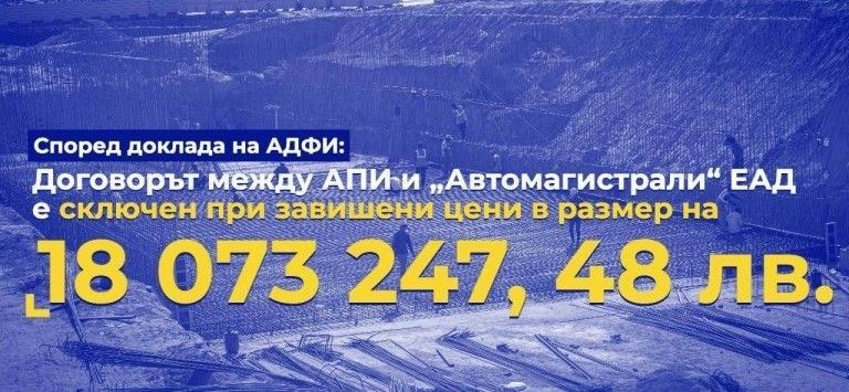 Във връзка с тиражирани неверни твърдения за липса на констатации за нарушения при проверка на Агенция за държавна финансова инспекция (AДФИ) в Агенция „Пътна инфраструктура“ (АПИ) Министерство на финансите заявява, че при проверката са констатирани сериозни нарушения. Обект на проверката на АДФИ е договор между Агенция „Пътна инфраструктура“ и „Автомагистрали“ ЕАД, с предмет: „Доизграждане на АМ „Хемус“ в участъци 7, 8 и 9 на обща стойност 1 350 000 000 без ДДС.