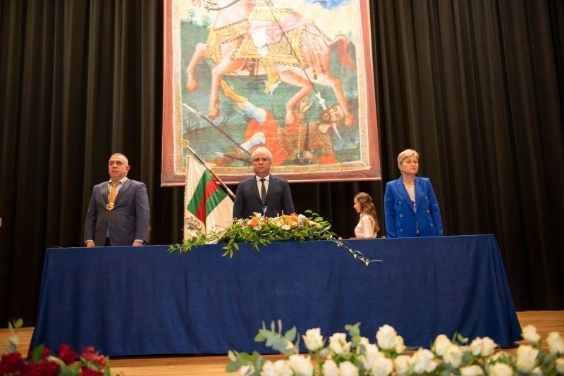 С внасяне на знамето на Общината в зала „Сливен“ днес започна 39-ата тържествената сесия на местния парламент. Тя е посветена на празника на Сливен – Димитровден.