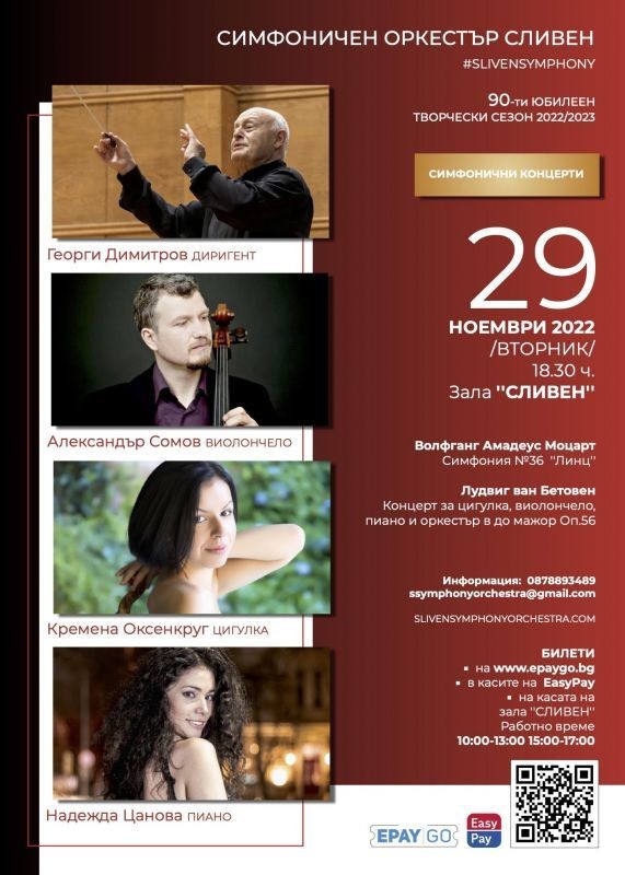 Едно мащабно концертно събитие готвят сливенските симфоници за вторник - 29 ноември, от 18.30ч. в зала “Сливен”. Космополитни гости и невероятна програма и ще завладеят публиката в града под сините камъни.