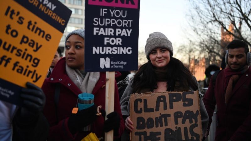 Британските медии разпространиха кадри на стачкуващи медицински сестри, издигнали плакати от рода на „Медицинската сестра е за цял живот, а не само за Ковид“ и „Недостигът на персонал струва живота на хора“. Заместник-министърът на здравеопазването Мария Колфилд заяви тази сутрин в интервю за Скай нюз, че „страданието за хората е неизбежно в резултат на стачките“. Тя допълни, че министърът на здравеопазването Стив Баркли се е срещнал с профсъюза, известен под името за Кралски колеж за медицински сестри, безрезултатно, а премиерът Риши Сунак е дал ясно да се разбере, че исканията за увеличение на заплащането с 19% е нереалистично.