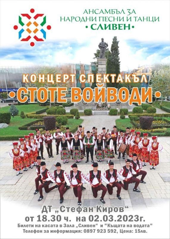 „Стоте войводи“ е името на концерт-спектакъла, който в момента подготвя Ансамбълът за народни песни и танци-Сливен. Жителите и гости на града ще имат възможност да го гледат на 2 март в залата на Драматичен театър „Стефан Киров“. Началото е обявено за 18.30 ч.