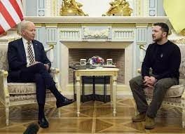 Появиха се и първите съвместни кадри на Байдън с украинския президент Володимир Зеленски. Двамата бяха на Михайловския площадв украинската столица.