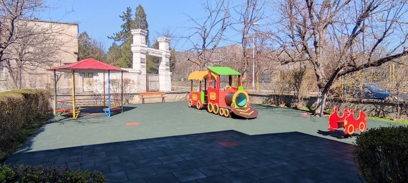 По изпълнение на обекта, строително-монтажните работи включват - боядисване и подсилване на конструкцията на металната беседка, монтаж на ударопоглъщаща настилка, на нови пейки и ново тематично съоръжение, представляващо влакче с вагони. Разнообразието от нови елементи е допълнено с интерактивна игра, нова пързалка и беседка, съобразени с възрастовата група.