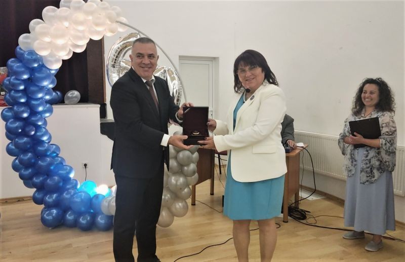 Кметът връчи Плакет на Община Сливен на директора Татяна Башева-Кънева по повод 60 години от създаването на гимназията.