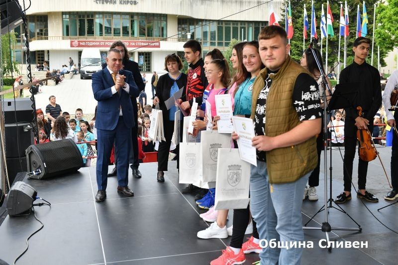 Ученици-носители на награди от национални и международни състезания, олимпиади и конкурси, с високи постижения в науката, изкуството и спорта през изминалата учебна година, бяха отличени от Община Сливен. Кметът Стефан Радев връчи наградите на 82 деца и младежи от сливенските училища по време на церемония, включена традиционно в програмата за отбелязване на 24 май – Деня на светите братя Кирил и Методий, на българската азбука, просвета и култура и на славянската книжовност!