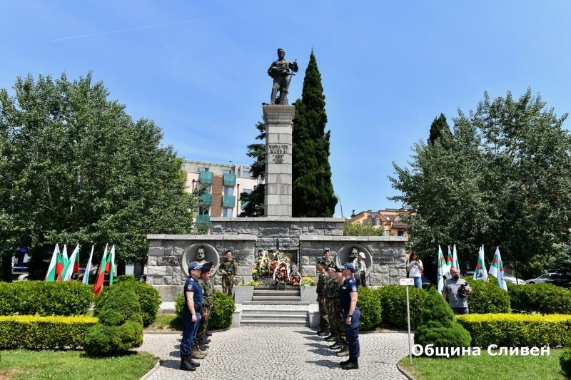 В Сливен общоградската церемония традиционно се състоя на централния градски площад „Хаджи Димитър“. Тя започна със строяване на почетния караул.