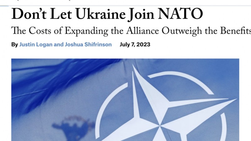 "И тук ползите за сигурността на Съединените щати от присъединяването на Украйна бледнеят в сравнение с рисковете от привличането ѝ в алианса. Приемането на Украйна в НАТО би повишило перспективата за мрачен избор между война с Русия и свързаните с нея опустошителни последици или отстъпление и обезценяване на гаранцията за сигурност на НАТО в целия алианс. На срещата на върха във Вилнюс и след това лидерите на НАТО би било разумно да признаят тези факти и да затворят вратата за Украйна", подчертават авторите Джъстин Логан и Джошуа Шифринсън.