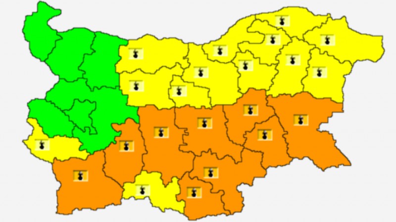Предупреждението е за Благоевград, Пазарджик, Пловдив, Кърджали, Хасково, Стара Загора, Сливен, Ямбол и Бургас.