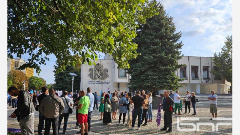 Стотици миньори, енергетици и синдикалисти се събраха пред Културния център в Раднево, където в този час започва извънредната среща с представители на регионалното и енергийното министерство.