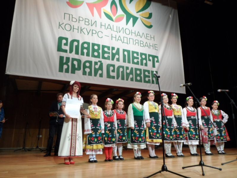 Два певчески състава спечелиха голямата награда „Славеи пеят край Сливен“ на приключилия едноименен конкурс – надпяване. Призът бе присъден на формация „Славейче“ от Школата за народни песни към читалище „Христо Ботев 1897“ - Сливен с ръководител Петя Григорова и на вокална група „Весели звънчета“ при Първо средно училище „Св. Седмочисленици“ - Търговище с ръководител Светла Стаменова. Техните изпълнения бяха високо оценени от компетентно жури под председателството на доц.д-р Данка Цветкова, преподавател по народно пеене в Академията за музикално, танцово и изобразително изкуство в Пловдив. Членове на журито бяха също известни имена – преподавателят и зам.директор на Националното училище по фолклорни изкуства – Котел Петър Аркалиев и Деян Митев, директор и гл. художествен ръководител на Ансамбъла за народни песни и танци – Сливен.