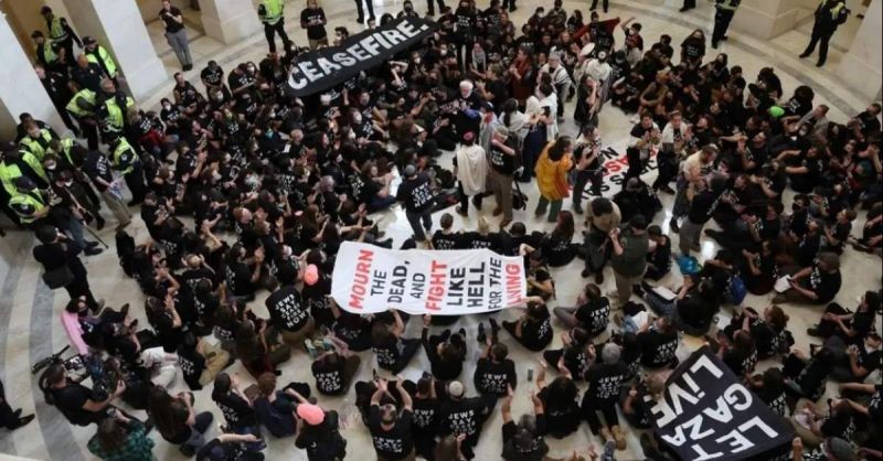 СТОТИЦИ АМЕРИКАНСКИ ЕВРЕИ НАХЛУХА В КОНГРЕСА НА САЩ, ПРОТЕСТИРАЙКИ СРЕЩУ ВОЙНАТА В ГАЗА