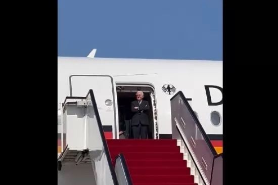 От вратата на самолета по стълбата и по пистата беше разстлан червен килим в чест на пристигането на германския лидер, имаше и почетни гвардейци, но нямаше представител на Катар, който да посрещне президента. На място беше и германският посланик в Катар Лотар Фрайшладер.