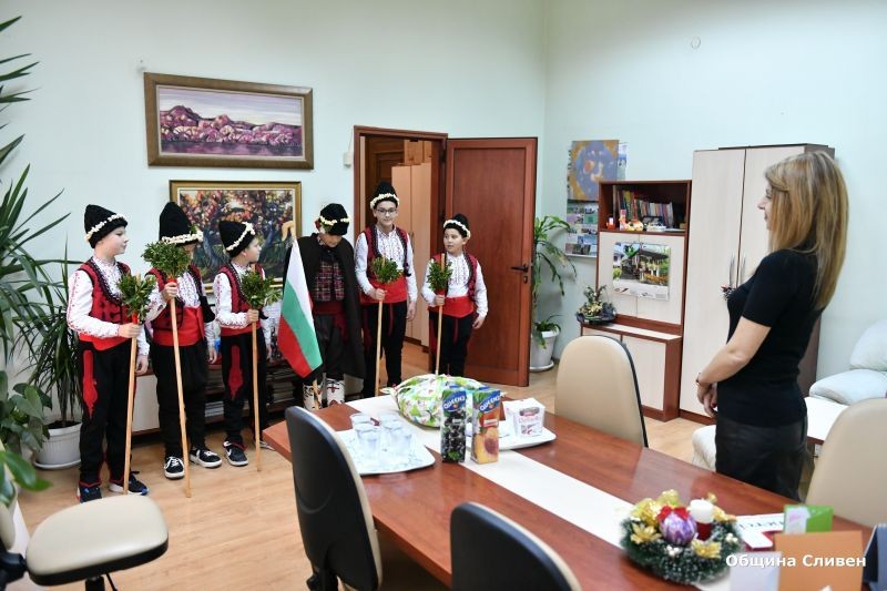 КОЛЕДАРИ ОТ НУ „ВАСИЛ ЛЕВСКИ“ БЯХА ГОСТИ НА ОБЩИНА СЛИВЕН