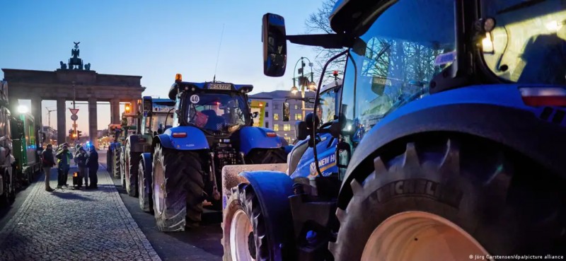 Германски фермери изкараха насред зима тракторите си, за да протестират в Берлин, Мюнхен, Хамбург, Висбаден, Магдебург, Майнц и Бремен срещу решението на правителството да отмени субсидиите им за дизелово гориво.