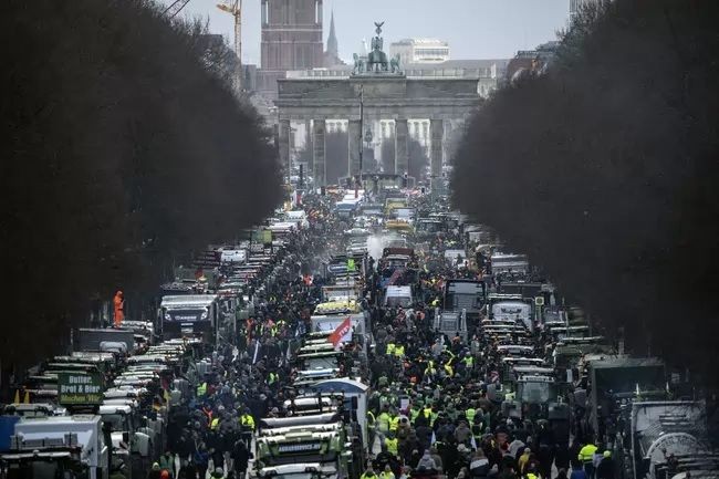 В понеделник в Берлин се провежда голям протест на фермери срещу плановете на правителството да намали субсидиите и да отмени някои данъчни облекчения за фермерите. В града пристигнаха над 5000 единици селскостопанска техника. Хиляди фермери се събраха пред Бранденбургската врата. Някои държат плакати с искане за оставката на правителството на канцлера Олаф Шолц.