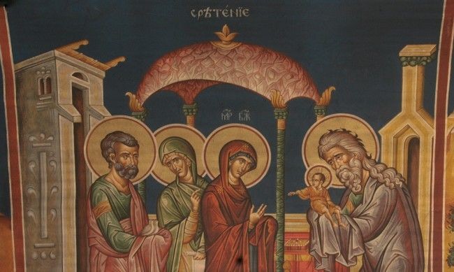 Посрещането на Богомладенеца Христос, дало името на днешния празник - Сретение Господне, и досега вълнува християнското сърце.
