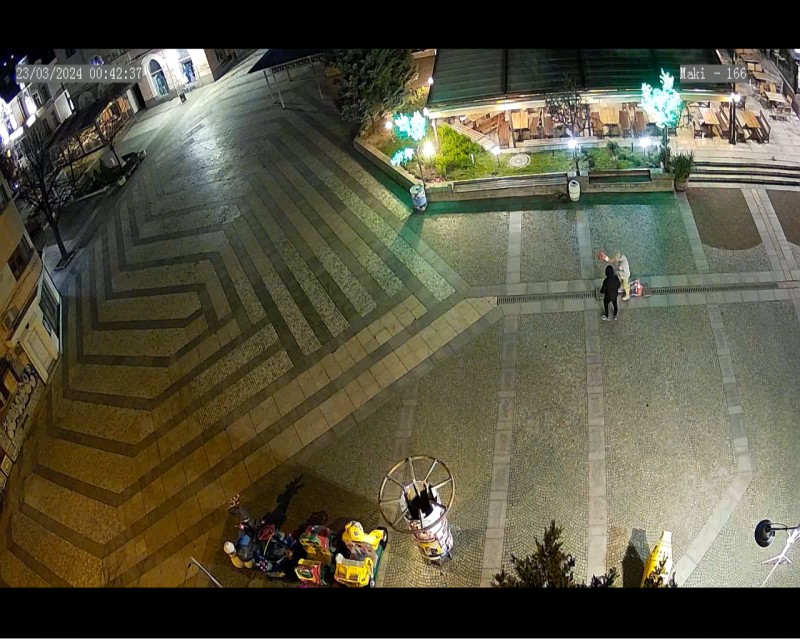 При друг случай от 22 март камерите са записали двама младежи с качулки, които взимат конуси, инвентар на Общината, служещи за временна сигнализация за пропаднали решетки по отводнителните канали пред заведение „Маки“. В последствие тези конуси са ги използвали за забавление до Общината. Там, със свои приятели, са ги прескачали с велосипеди и скейтбордове.