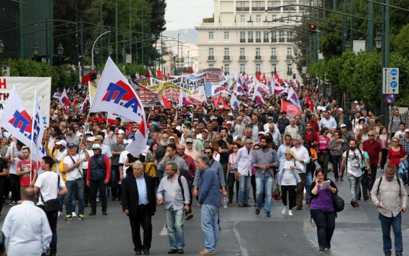 Гръцките синдикати отбелязват Деня на труда с 24-часови национални стачки и протести срещу готвените поредни съкращения, за които настояват кредиторите в замяна на отпускането на нови средства. Притискано от своите кредитори в лицето на Европейския съюз, Европейската централна банка (ЕЦБ) и Международния валутен фонд (МВФ), правителството се съгласи да въведе още 3,6 млрд. евро съкращения за 2019 и 2020 г.