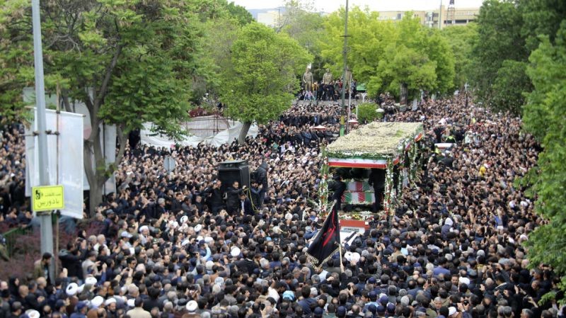 ХИЛЯДИ СЕ СТЕКОХА ЗА ПОГРЕБЕНИЕТО НА ЗАГИНАЛИЯ ПРИ АВИОКАТАСТРОФА ПРЕЗИДЕНТ НА ИРАН