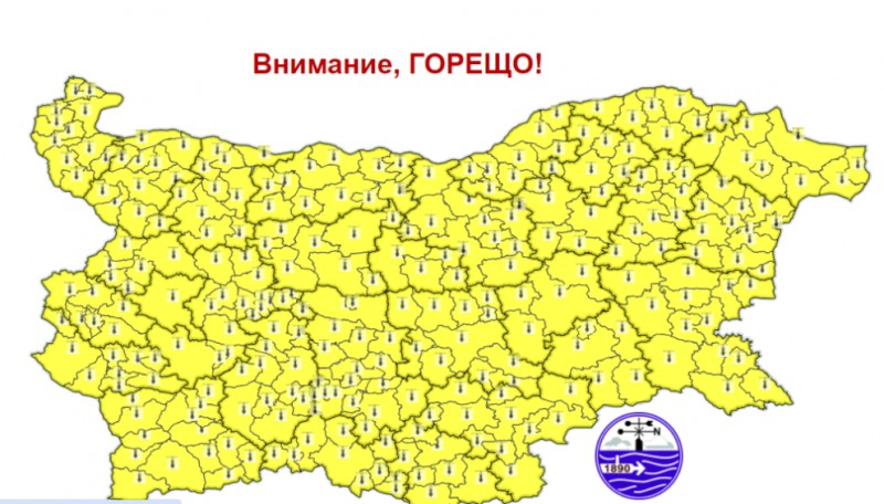 ЖЪЛТ КОД ЗА ОПАСНА ЖЕГА В ЦЯЛАТА СТРАНА, ТЕМПЕРАТУРИТЕ СКАЧАТ ДО 39°