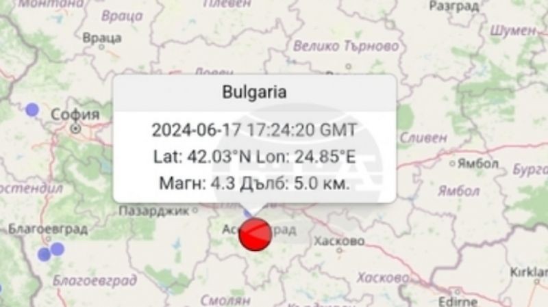 ЗЕМЕТРЕСЕНИЕ ОТ 4,3 ПО РИХТЕР В ПЛОВДИВ И АСЕНОВГРАД