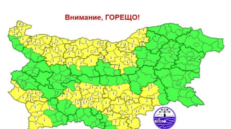 Предупреждението е в сила за Благоевград, Кюстендил, Кърджали, Велико Търново, Видин, Враца, Габрово, Ловеч, Монтана, Пазарджик, Плевен, Пловдив, Русе, Стара Загора, Хасково, Ямбол.