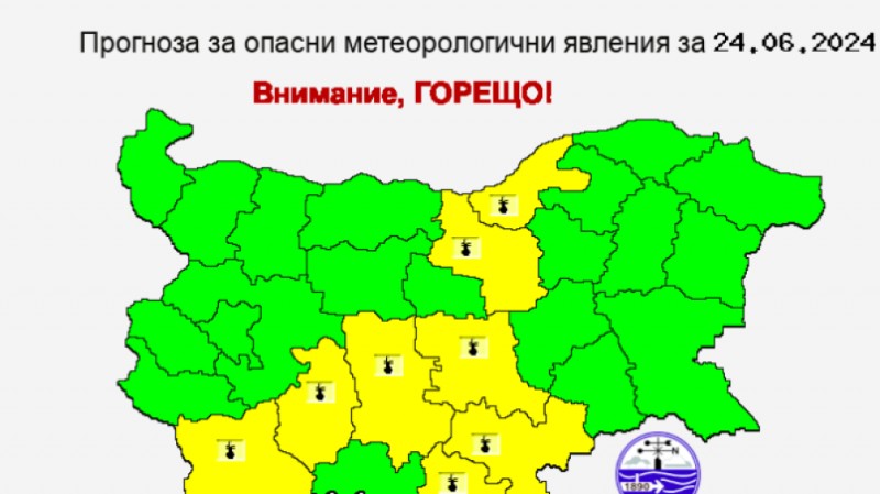 ЖЪЛТ КОД ЗА ЖЕГА В 8 ОБЛАСТИ