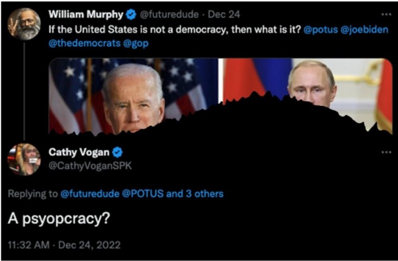 Кати Воган, изпълнителен продуцент на уебпредаването на Consortium News „CN Live!“, въведе нов термин, с който да опише управлението чрез псиопс или психологически операции: психокрация.