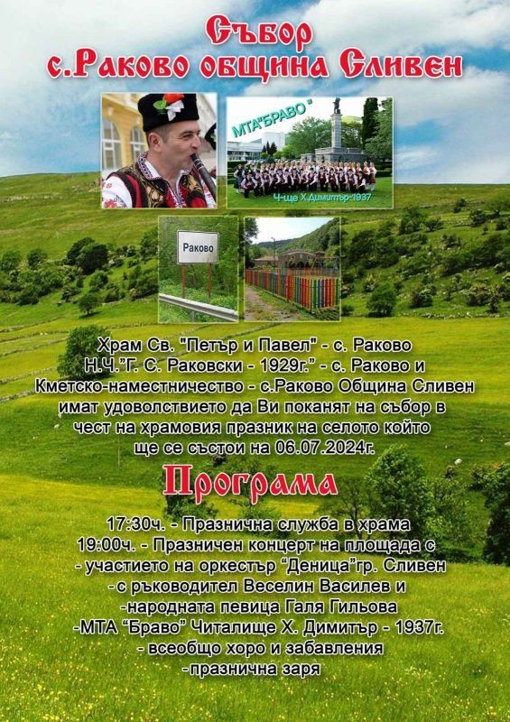 РАКОВО ОРГАНИЗИРА СЪБОР В ЧЕСТ НА ХРАМОВИЯ ПРАЗНИК НА СЕЛОТО – 6 ЮЛИ