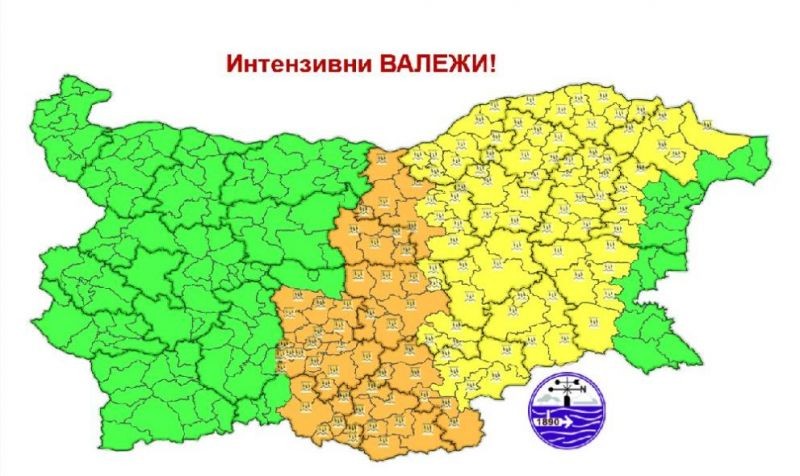 ЖЪЛТ И ОРАНЖЕВ КОД ЗА ИНТЕНЗИВНИ ВАЛЕЖИ