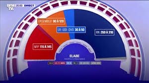 Според преброените до обяд почти 100% от бюлетините “Нов Народен фронт”, предвождан от лидера на крайнолявата формация “Непокорна Франция” Жан-Люк Меланшон, ще има 182 кресла в Националното събрание, президентският съюз “Заедно” - 168, “Национален сбор” - 143, Републиканската партия - 45, а останалите 39 места се разпределят почти по равно между самостоятелни десни и леви играчи. Абсолютно мнозинство от 289 депутати няма да има никоя партия и в тази ситуация Франция може да бъде управлявана единствено от коалиция. Но в страната на Хексагона политическо съглашателство никога не е било популярно и ако някога все пак се е случвало, то е било за кратко и винаги неефикасно поради разнобой на интересите на коалиционните партньори.