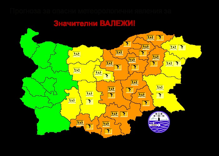 ОРАНЖЕВ И ЖЪЛТ КОД ЗА ВАЛЕЖИ В ЦЕНТРАЛНА И ИЗТОЧНА БЪЛГАРИЯ