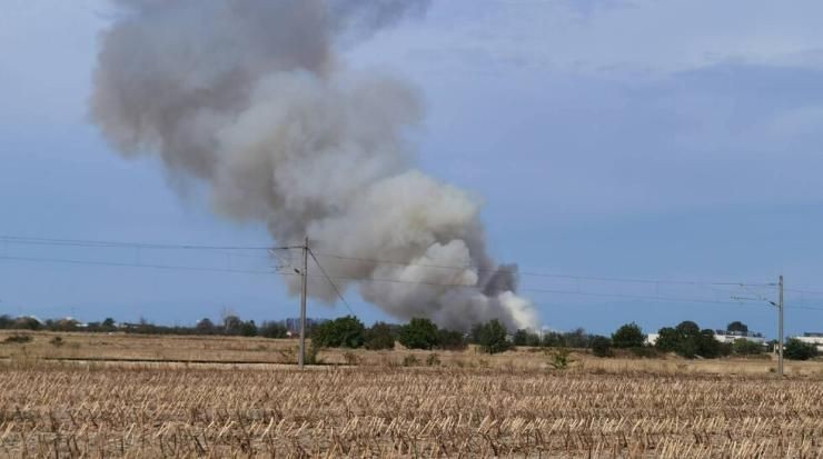 Пет противопожарни екипа са насочени към Трета авиационна база "Граф Игнатиево", съобщиха за БТА от пресцентъра на Регионалната дирекция "Пожарна безопасност и защита на населението" в Пловдив.