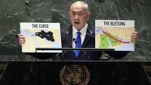 „Няма място, което дългата ръка на Израел да не може да достигне“, каза Нетаняху, сравнявайки войната на Израел на седем фронта с похода на Мойсей към Ханаан от равнините на Моав. Седемте фронта, които той показа на карикатурните си карти, са Газа, Юдея и Самария (окупирания Западен бряг), Ливан, Йемен, Ирак, Сирия и Иран. Израел е във война с половината Близък изток.