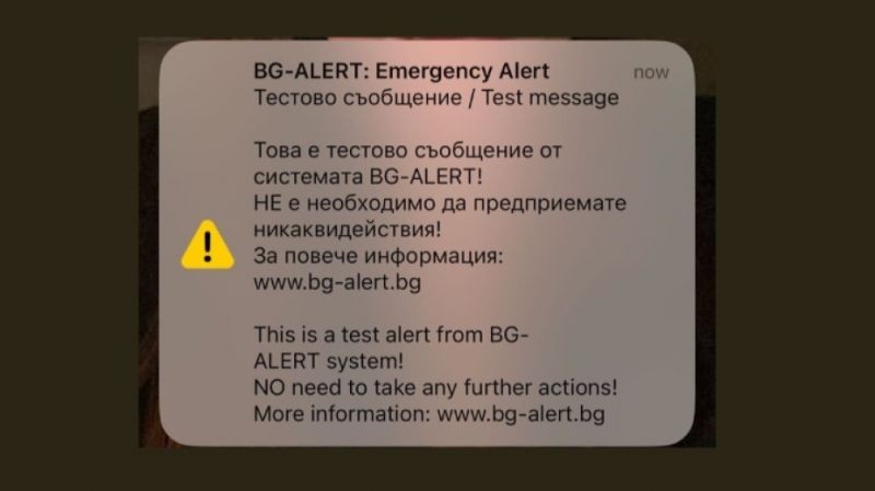 "Тестът беше планиран за първи октомври, но беше отложен заради ситуацията в Близкия изток. Той ще бъде извършен днес между 13.00 и 13.30 часа. Регулярен е и ще се извършва и през следващите години. Предвидено е системата да се тества по два пъти в годината".