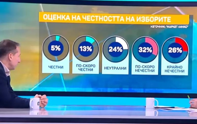 "МАРКЕТ ЛИНКС": 58% ОТ БЪЛГАРИТЕ СМЯТАТ, ЧЕ ИЗБОРИТЕ НЕ СА БИЛИ ЧЕСТНИ