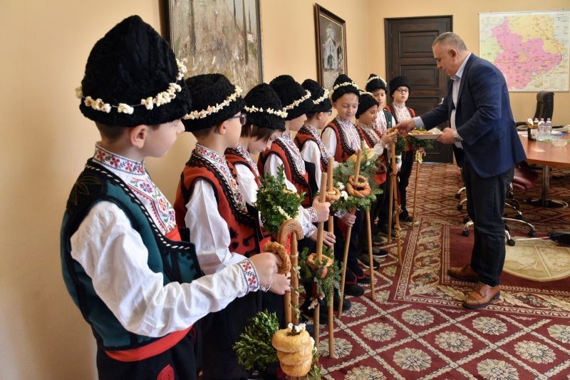 Коледарчета от втори клас на Начално училище “Васил Левски” гостуваха днес в Община Сливен. Те посетиха кабинета на кмета Стефан Радев и заместник-кметовете Пепа Чиликова, Камен Костов и Стоян Марков. Децата, облечени в традиционни носии, пяха коледни песни и пожелаха много здраве за всички служители в общинската администрация. Кметът постави на тоягите им гевречета за берекет и поздрави коледарчетата и техните учители за поддържането на българските традиции и обичаи.