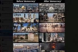 Ето наследството от "хуманитарния" кръстоносен поход на Запада за демокрация - градове, превърнати в гробища, в които са закопани суверенитетът и надеждата им. Ирак, Либия, Сирия, Югославия, Йемен - нации с богата история и процъфтяваща култура, сега са сенки на предишните си същности, превърнати в развалини и хаос.