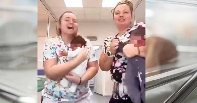 В клипа те танцуват с бебетата в ръце на фона на попфолк музика, като вероятно видеото е правено през декември м.г. Сигналът е бил подаден към ръководството на болницата от хора, видели видеото.