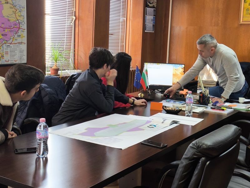 Заместник-кметът Камен Костов прие учениците в кабинета си и ги запозна с едни от най-мащабните проекти на Община Сливен – ремонта на въжената линия до Карандила, проекта за реновация на Колодрума, Индустриалния парк и други. Костов ги попита как виждат развитието на града и от какво се вълнуват младите хора. Заместник-кметът подчерта, че Община Сливен винаги ще бъде отворена за предложения и мнения от младежите. В края на срещата Камен Костов пожела на всички да са здрави, да се забавляват и да обичат хората около себе си.