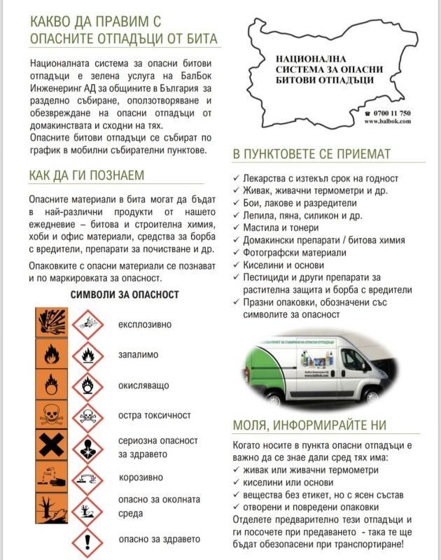 ПРОЛЕТНА КАМПАНИЯ ЗА СЪБИРАНЕ НА ОПАСНИ БИТОВИ ОТПАДЪЦИ В СЛИВЕН НА 18 МАРТ