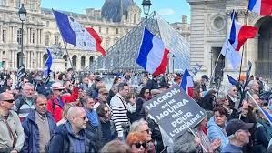 Хиляди протестиращи се събраха в събота следобед на площад „Пале Роял“ в близост до Лувъра.