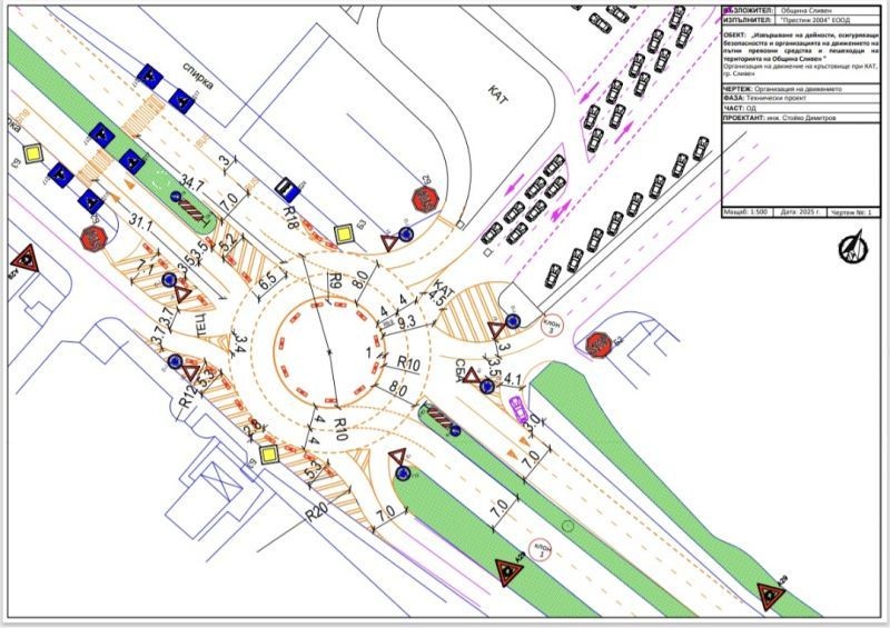 По предложение на МВР-Сливен, Общината ще реализира проект за кръгово движение. Проектът за временна организация на движение ще бъде идентичен с този на кръстовището между ул. „Радой Ралин“ и бул. „Хаджи Димитър“, където бяха монтирани пластмасови елементи за облекчаване на трафика на автомобили. До решението се стигна след заседание на Общинската комисия по безопасност на движението по пътищата през 2024 г. Комисията реши единодушно тогава пред сградата на КАТ – Сливен, да бъде изградено кръгово кръстовище. Целта е повишаване безопасността на движение, както и облекчаване на трафика на автомобилите – особено на моторните превозни средства, включващи се в движението по бул. „Банско шосе“ - от локалното платно към „Топлофикаця“ АД и от КАТ.
