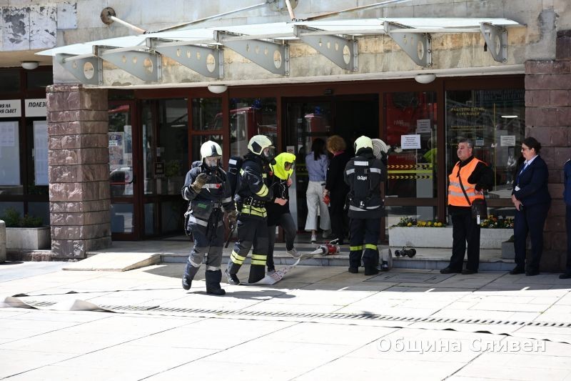 ЕВАКУИРАХА СЛУЖИТЕЛИ ОТ ОБЩИНА СЛИВЕН ЗАРАДИ СИМУЛИРАНА СИТУАЦИЯ ПРИ ПОЖАР