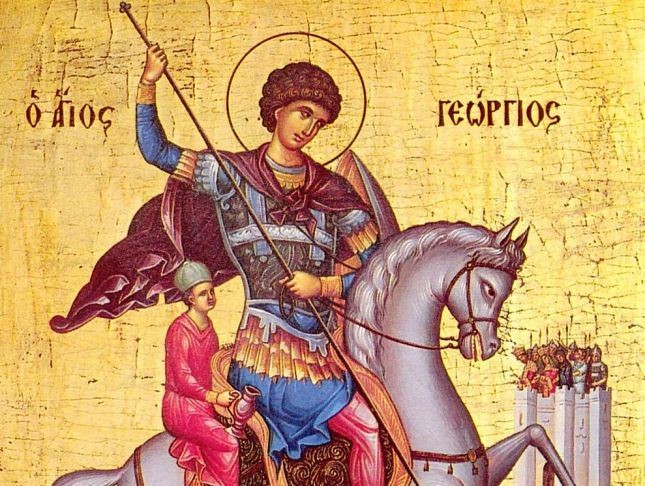 Св. великомъченик Георги Победоносец е живял в малоазийската провинция Кападокия по времето на римския император Диоклетиан /284-305/. Постъпва съвсем млад във войската и проявява завидни военни способности. На 20-годишна възраст получава чин на военен трибун. Страстен привърженик и защитник на Христовата вяра, Георги е хвърлен в тъмница, подложен е на жестоки изтезания и е обезглавен през 288 г. Според житието, недалеч от гроба му се появявал змей, който опустошавал околността. Светецът успял да порази с копието си чудовището. Оттогава се ползва със славата на един от най-изявените змееборци (драконоборци) и конници в християнството, поради което е избран за светец - покровител на войната и войската