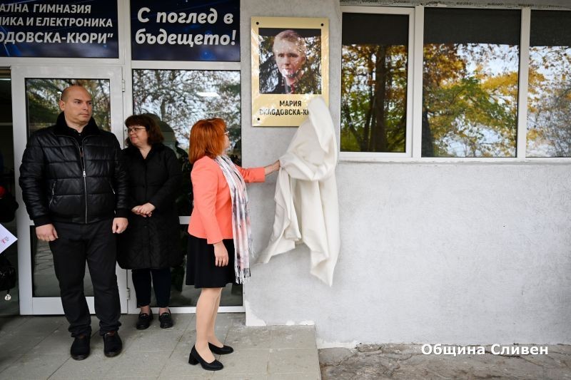 ПГЕЕ „МАРИЯ СКЛОДОВСКА-КЮРИ“ В СЛИВЕН ОТБЕЛЯЗА ПРАЗНИКА НА УЧИЛИЩЕТО С ОТКРИВАНЕ НА ПАМЕТНА ПЛОЧА НА СВОЯ ПАТРОН