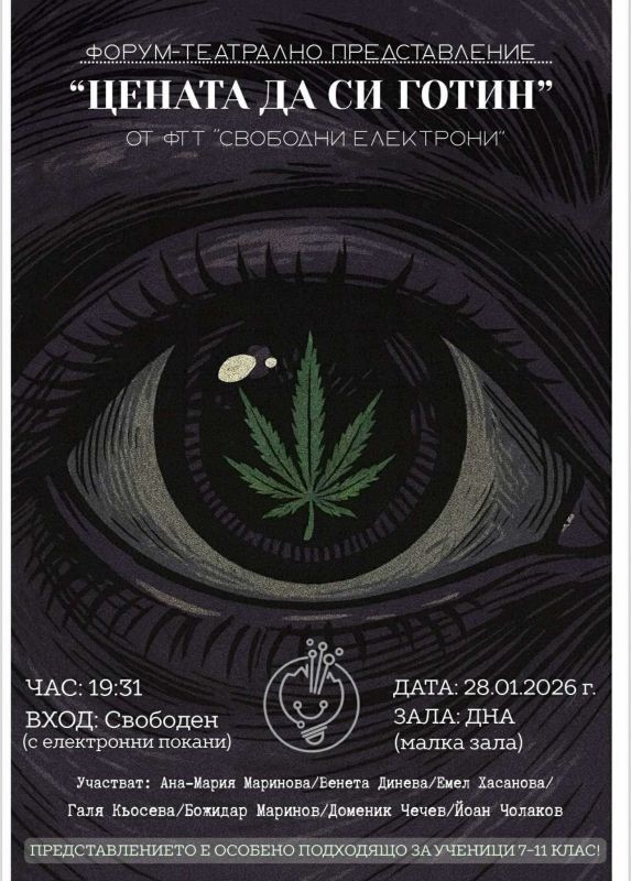 Младежка форум-театрална трупа „Свободни електрони“, която е част от Центъра за подкрепа за личностно развитие – Детски комплекс-Сливен, се отправя към поредното си предизвикателство. Младите таланти са подготвили премиера на ново форум-театрално представление. Събитието ще се проведе в малката зала на Военния клуб на 28 януари от 19:31 часа. Входът е безплатен, но зрители ще се допускат само с електронни покани, с които могат да се сдобият чрез лично съобщение до Фейсбук или Инстаграм страниците на „Свободни електрони“.