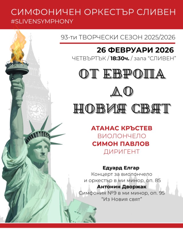 „ОТ ЕВРОПА ДО НОВИЯ СВЯТ“ ПРЕДСТАВЯ СЛИВЕНСКИЯТ СИМФОНИЧЕН ОРКЕСТЪР НА 26 ФЕВРУАРИ
