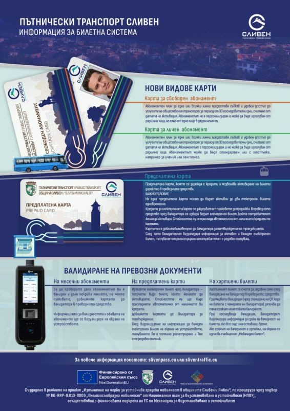 Информация за продажбата на новите превозни документи може да получите на сайта: https://slivenpass.eu, а информация в реално време за трафика на превозните средства по различните линии - на сайта: https://www.sliventraffic.eu.