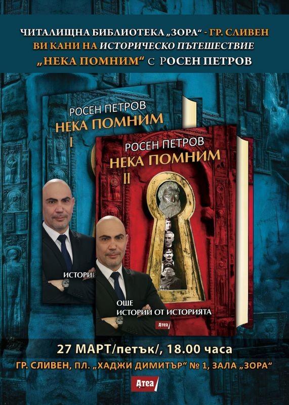 Библиотека „Зора“ към НЧ „Зора 1860“-Сливен и издателство „Атеа“ имат удоволствието да Ви поканят на творческа среща „Нека помним“ /Истории от историята/ с Росен Петров.